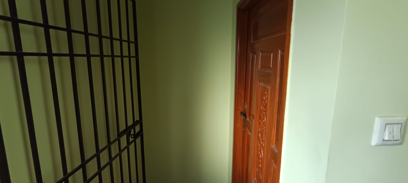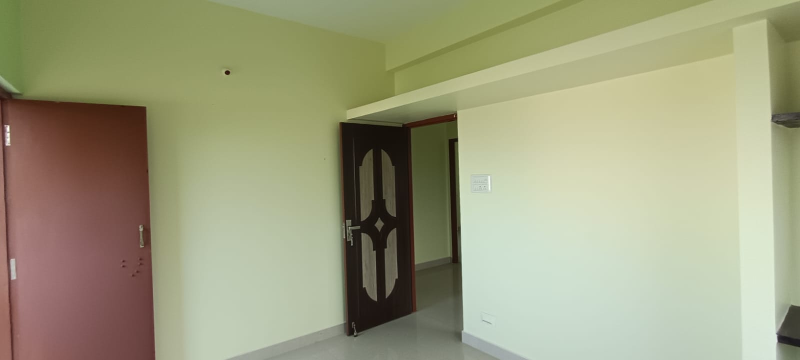 Main door : Teak wood frame with teak veneered door shutter and brass fittings.